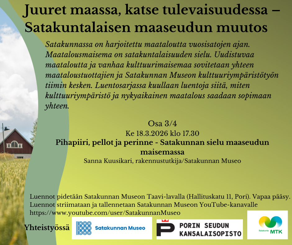 Luentosarjan toteuttavat yhteistyössä Satakunnan Museo, MTK-Satakunta ja Porin seudun kansalaisopisto