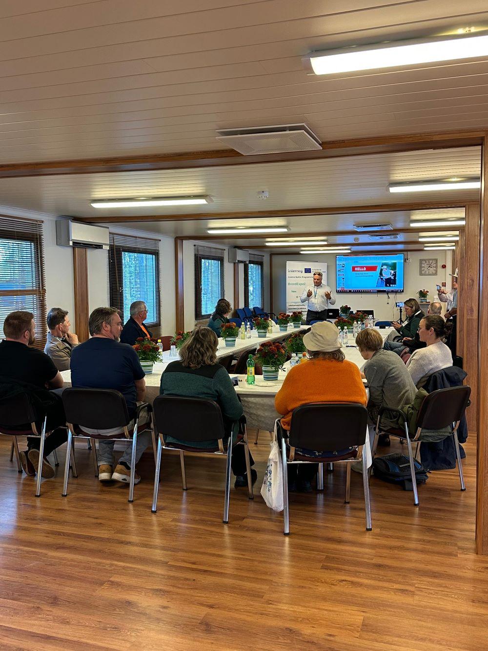 Seminaarissa eläinviennin kokemuksista kertoi tuottaja Eemeli Piesala.