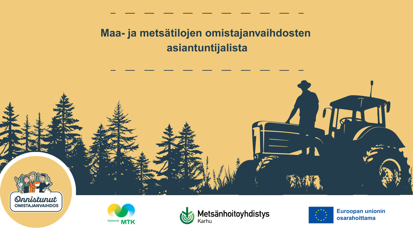 Maa- ja metsätilan omistajanvaihdos on usein yksi yrittäjän elämän suurimmista taloudellisista päätöksistä. Prosessiin liittyy monia asioita, kuten verotus, rahoitus, sopimukset ja tukiehdot. Siksi omistajanvaihdosta suunnitellessa kannattaa hyödyntää asiantuntijoiden osaamista.