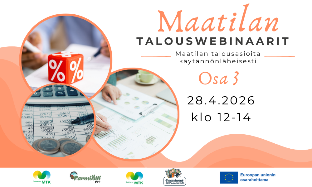 Maatilan talouswebinaarien kolmannessa osassa keskitytään maatilan investointien suunnitteluun, rahoitukseen ja riskien hallintaan.