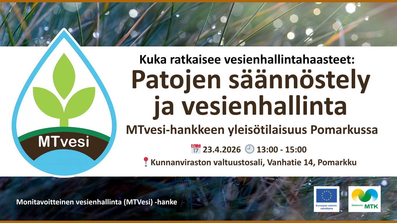 Lisätietoja hankkeesta ja yhteystiedot: https://satakunta.mtk.fi/mtvesi