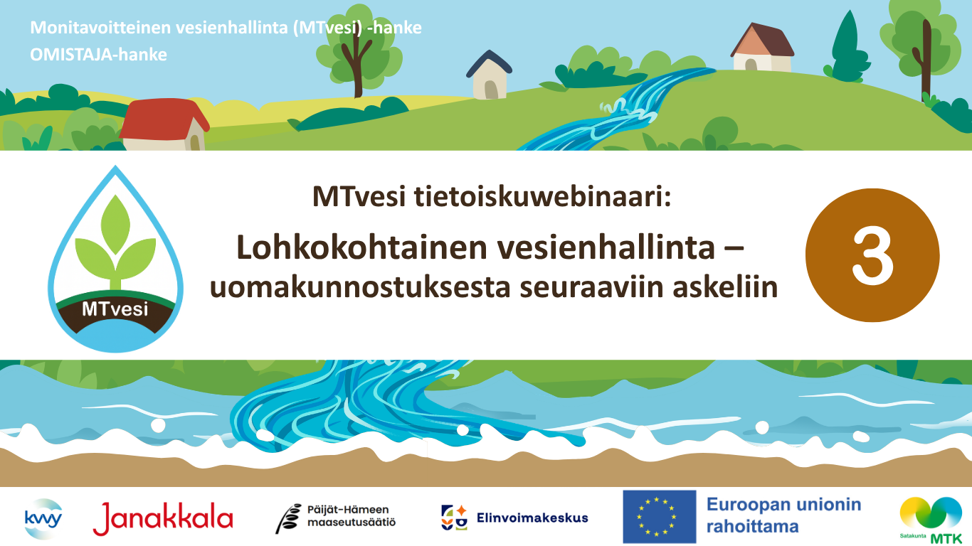 Webinaari on osa kolmen MTvesi tietoiskuwebinaarin sarjaa, joka on osa Monitavoitteinen vesienhallinta (MTvesi)-hankkeen työpakettia "Ojitusyhteisöt ja niiden aktivointi: Olenko minä ojitusyhteisön jäsen?". Työpaketin tavoitteena on lisätä ymmärrystä ojitusyhteisöistä monitavoitteisen vesienhoidon toimijoina.
