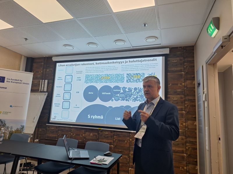 Erikoistutkija Csaba Jansik Luonnovarakeskuksesta (LUKE) piti esitelmän ruokaviennin mahdollisuuksista.
