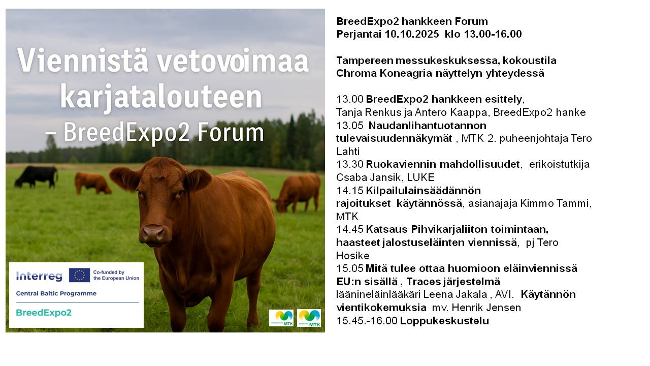 Viennistä vetovoimaa karjatalouteen – Breedexpo2-hankkeen forum - MTK-Satakunta